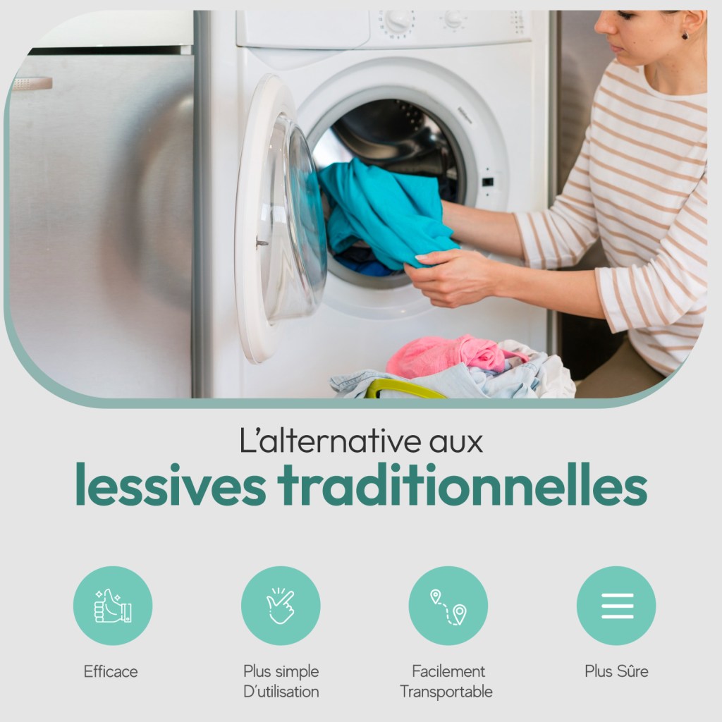 La lessive en feuille a des atouts intéressant le format compact permet un stockage du détergent dans les petites surfaces, un dosage facile une feuille, une lessive, facilement transportable et une dilution rapide.