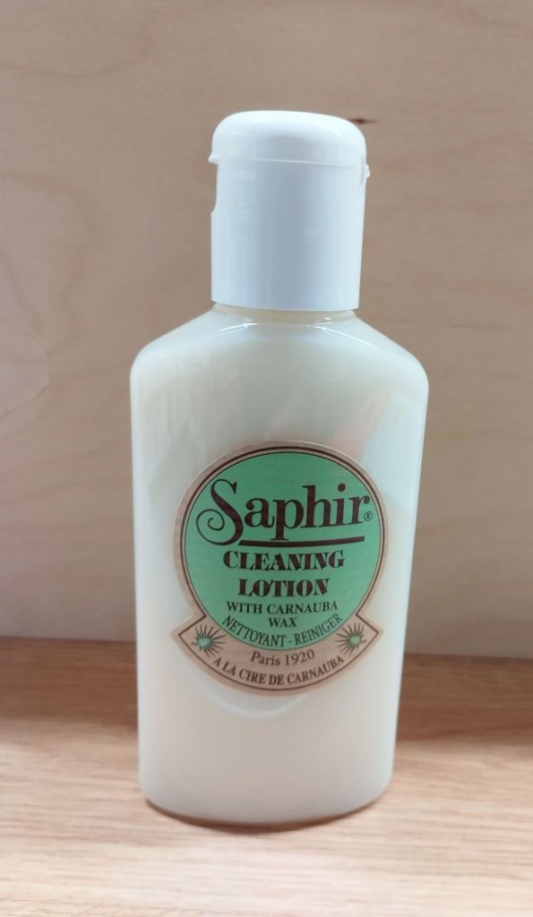 Un bon produit de nettoyage doit ôter la salissure sur le cuir sans rentrer trop profondément dans la fleur ou dégrader « patine » de la peau, il existent des savons glycérinés et des lotions de nettoyage qui font ce type de travail sans problème, bien entendu un opération de nettoyage humide se fait sur un cuir traité en amont.
