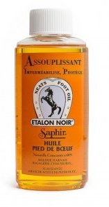 Aussi usitée a pour l’entretien de cuir de sellerie l’huile de pied de bœuf est radicale pour assouplir les cuir épais qui ont durci ou tout simplement perdu de la souplesse, tout simplement en l’appliquant sur l’envers du cuir quand cela est possible.