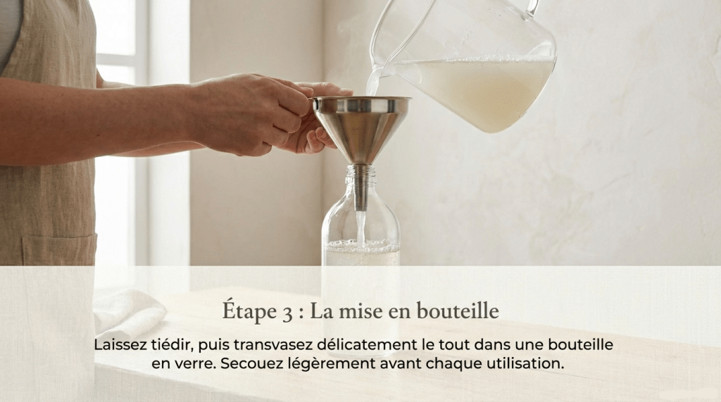 Mélanger le tout avec énergie dans le flacon de lessive vide que maintenant, vous êtes en train de recycler.