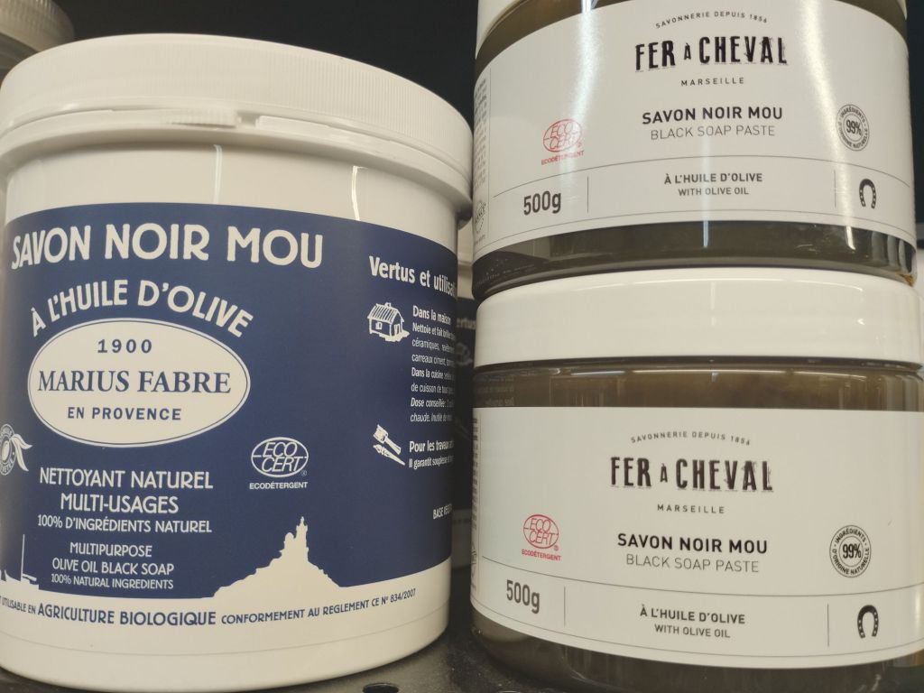 Le plus universel est le savon noir à l’huile d’olive, un peu plus cher que son homologue a l’huile lin, mais il va vraiment être efficace pour tous types de situations.