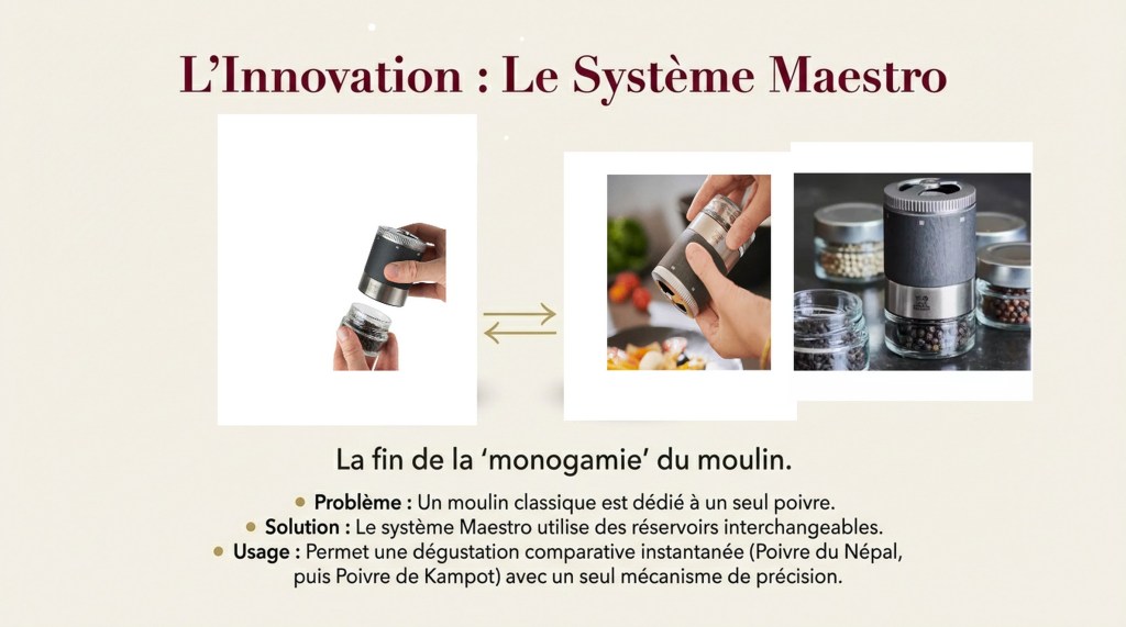 Pour les amateurs de poivre il existe chez Peugeot un moulin qui permet d’avoir plusieurs poivre dans un seul moulin.