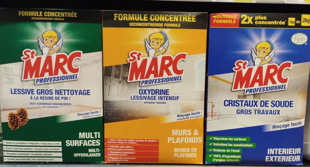 Pour le nettoyage une bonne lessive comme la St MARC s’impose, elle permet de nettoyer en profondeur la surface. Ne pas oublier de rincer .