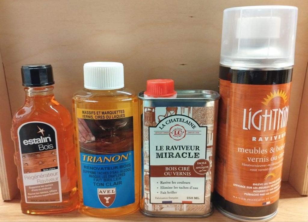 Sur des taches anciennes l’idéal est passer un léger coup de sèche-cheveux sur la zone a traiter afin de « réveiller » la matière grasse qui aura figer dans le bois.