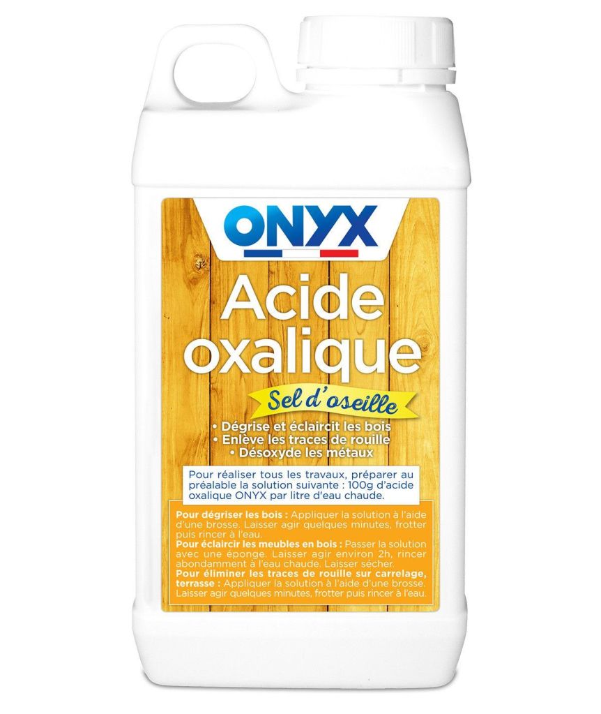 L’acide oxalique ou sel d’oseille, est un composé organique . Cet acide a été extrait et isolé au XVIIIe siècle via l’oseille (Oxalis acetosella). On le retrouve aussi à l’état naturel dans d’autres végétaux tels que l’ épinard, la betterave et la rhubarbe. L’acide oxalique est pour moi le meilleur éclaircisseur pour le bois, attention cela reste un acide a manipuler quand même avec précaution.